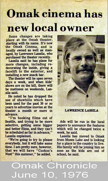 New owners Larry and Mary Lassila decided on "Omak Cinema" when they bought it April 1, 1976